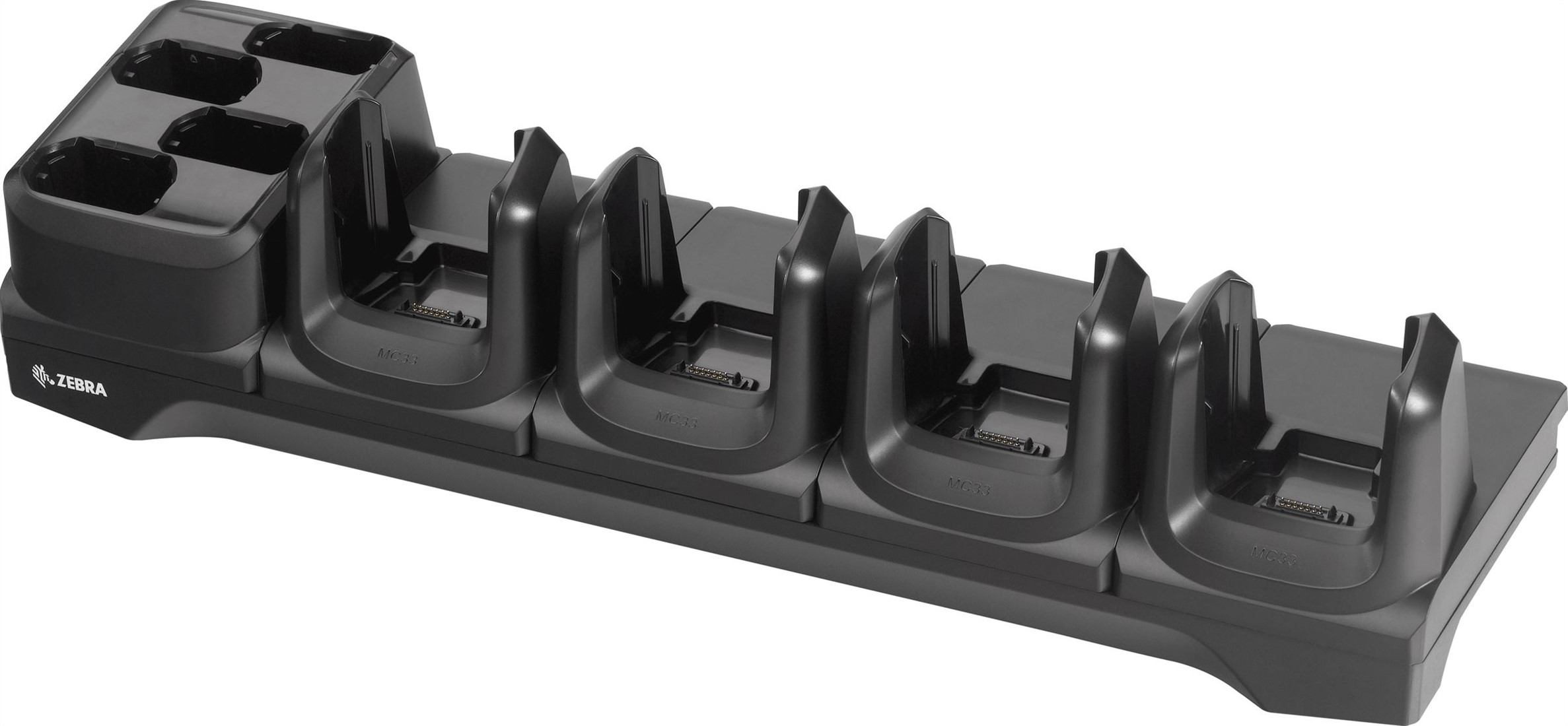 4-Slot charge only cradle for simultaneously charging up to 4 Zebra MC3300 mobile computers and up to 4 spare batteries. To charge your MC3300, simply place the device in the cradle.