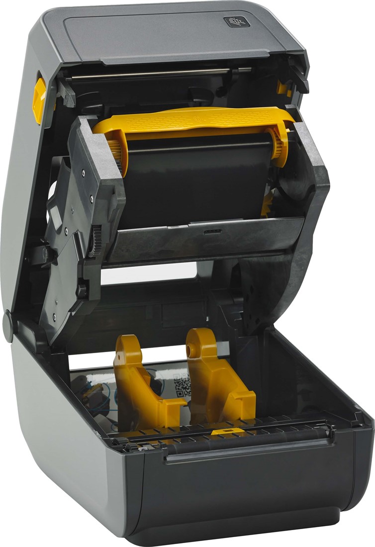 The ZD420c printers can print plain paper labels with ribbon in addition to thermal labels. Thermal labels are ideal for address and shipping labels, while plain paper labels printed with ribbon have a greater contrast, which improves the readability of barcodes and lasts longer. Plain paper labels printed with ribbon are much less sensitive to UV light so that they will not discolour or fade as quickly as thermal labels.